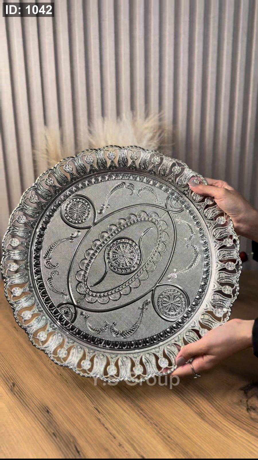 صنية تقديم حجم كبير بيوتر فضي