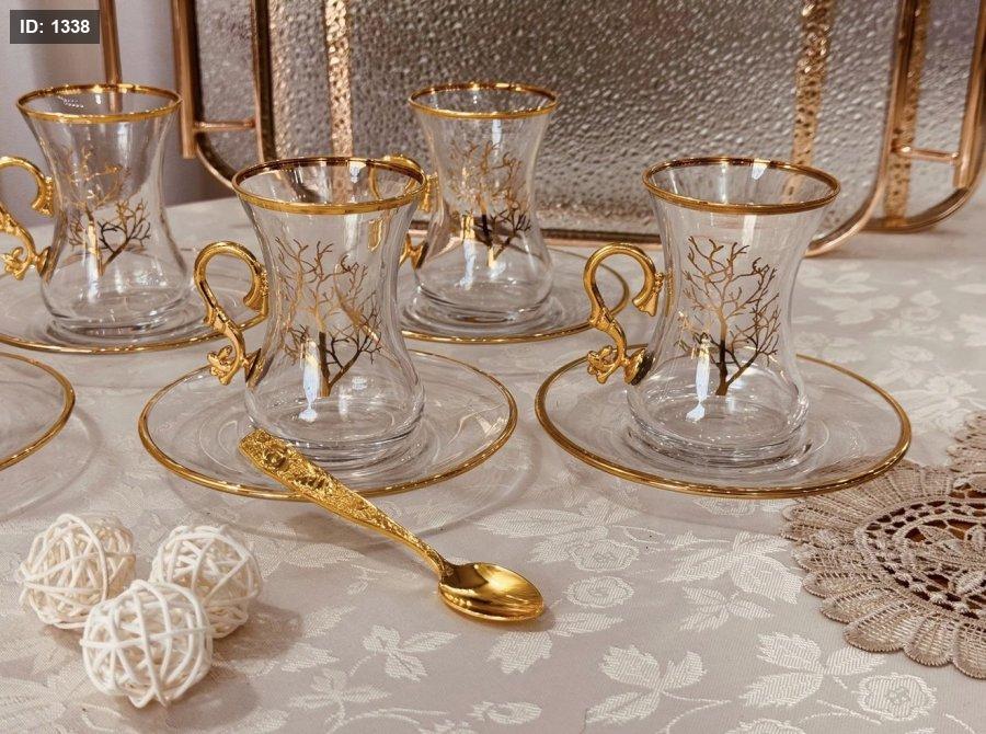 طقم 6 + 6 صحن كاسات قرفة وشاي مخصور
