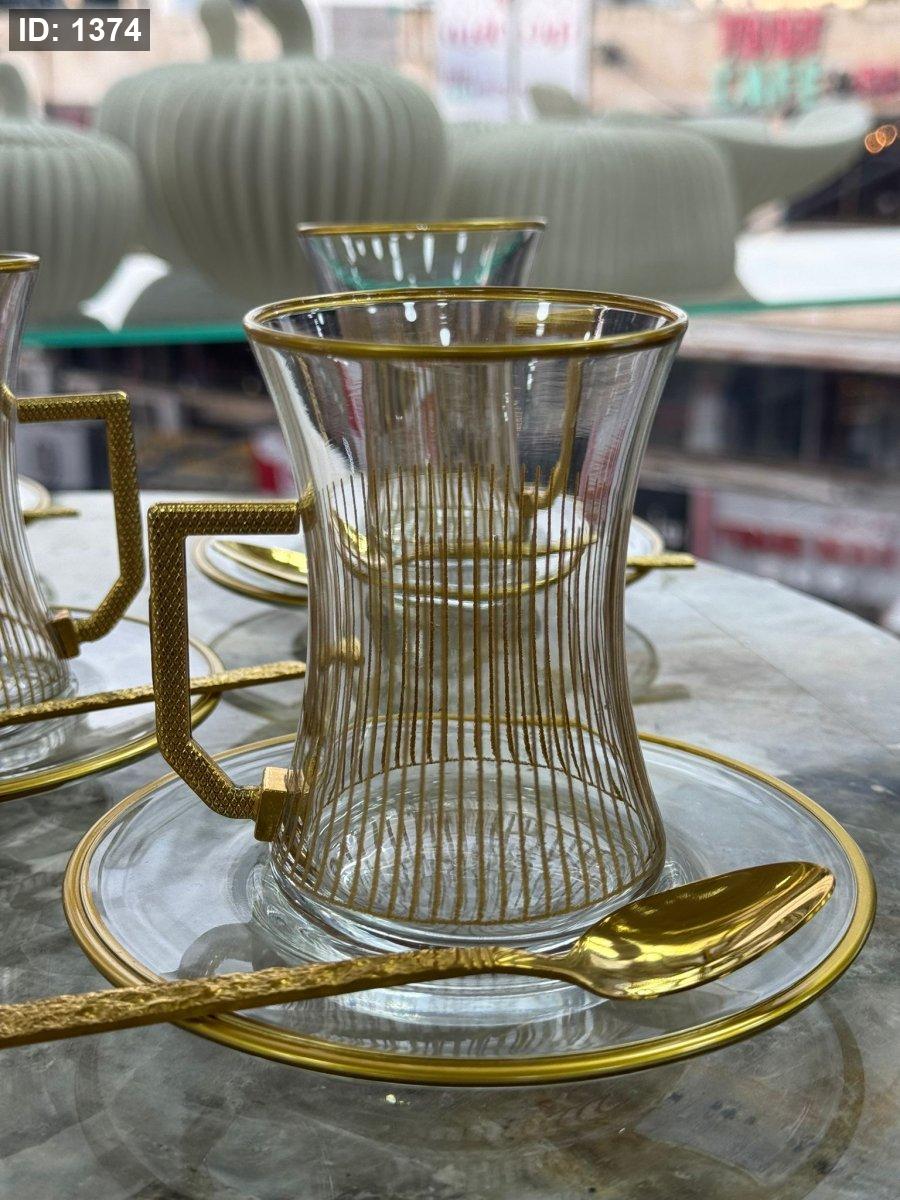 كاسات قرفة وشاي 12 + 12 معالق كريستال