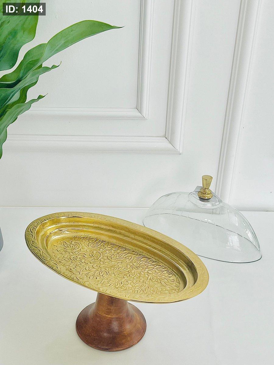 مضيفة مع غطاء نحاس قاعده خشب هندي