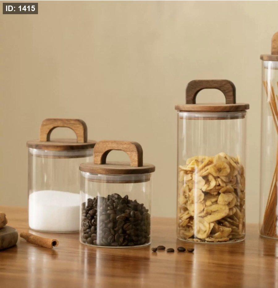 طقم 3 مرتبان زجاج غطي خشب