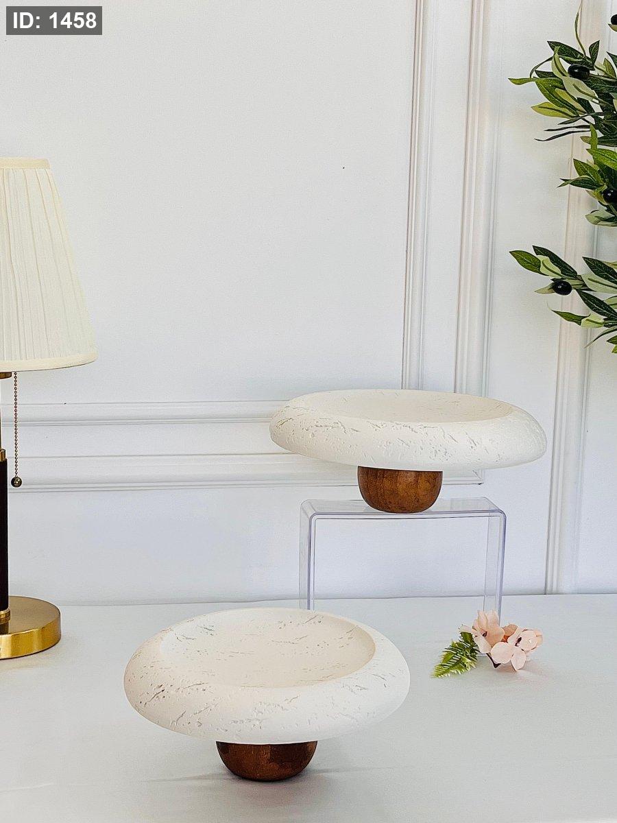 طقم 2 جاط قاعدة خشب حجري