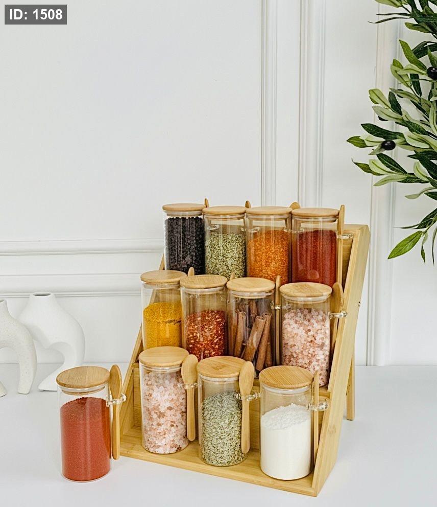 طقم 12 المرتبان + معالق + رف حجم كبير