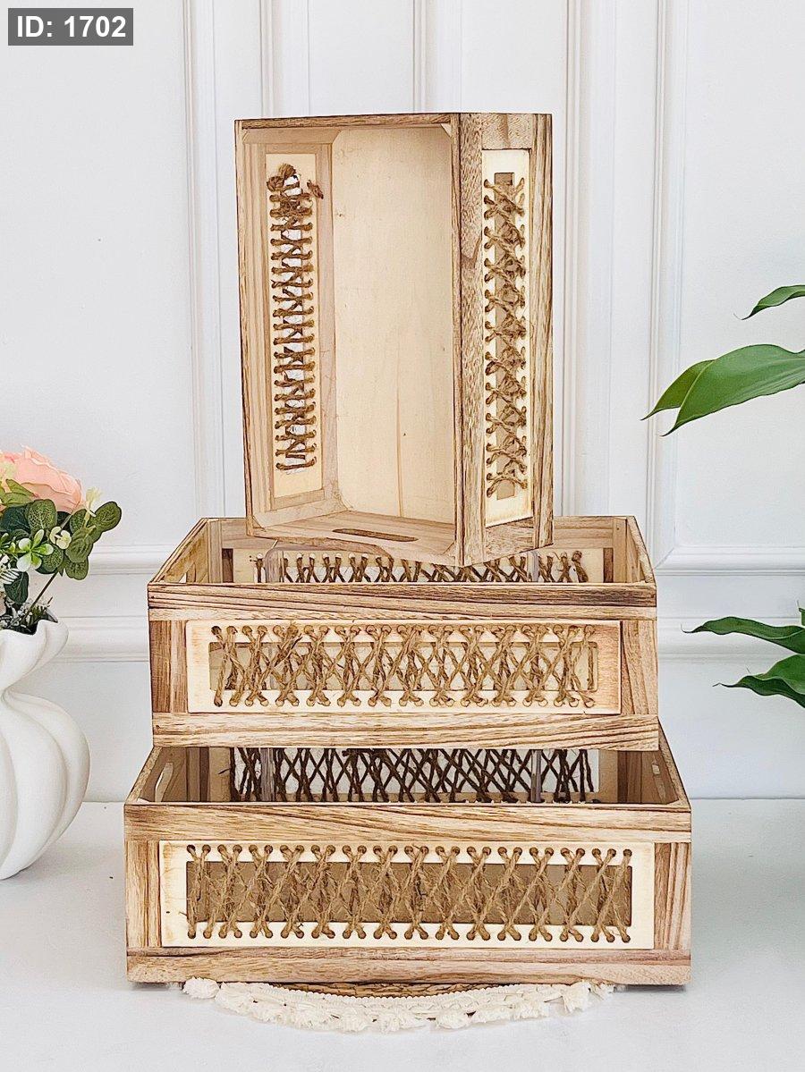 طقم 3 صندوق خشب