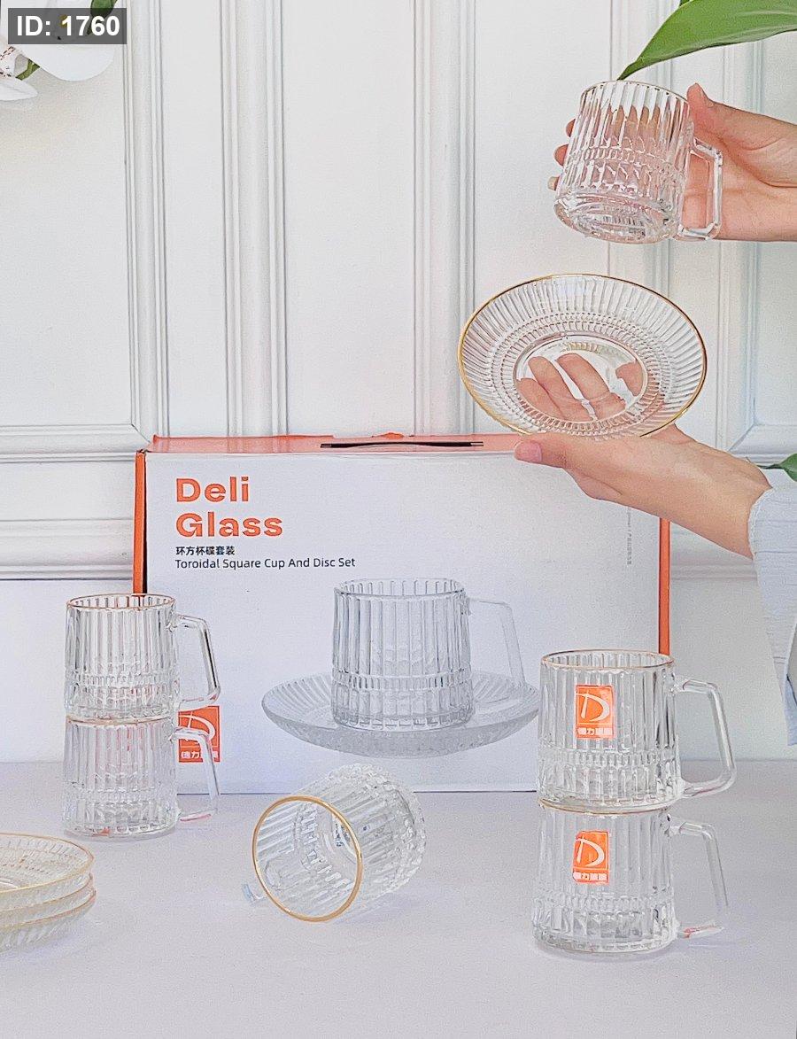 طقم 6 فنجان شاي + 6 صحون مذهب