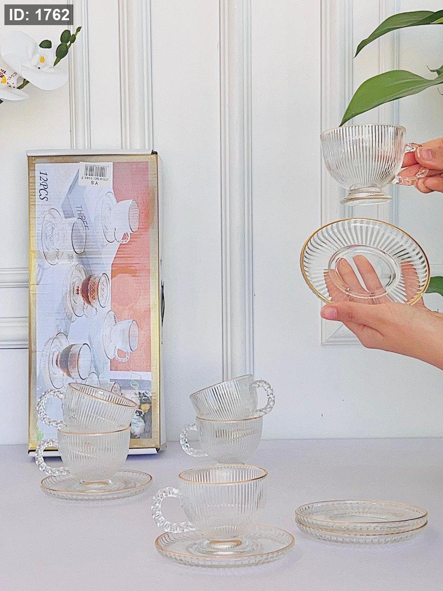 طقم 6 فنجان شاي + 6 صحون مذهب
