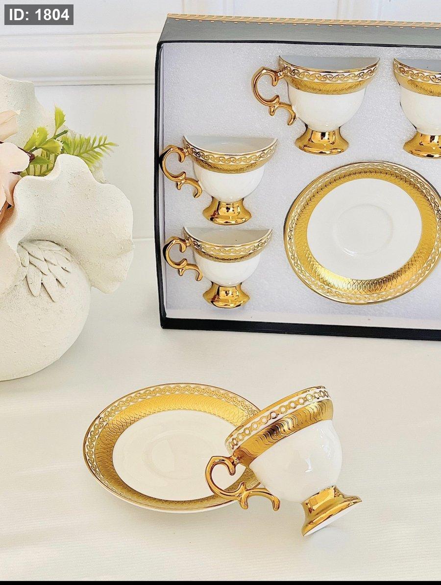 طقم 6 فنجان قهوة كعب مذهب